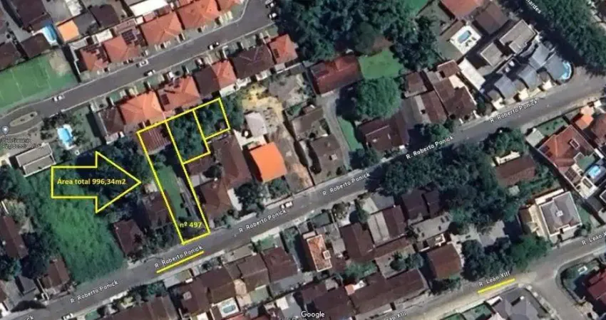 Terrenos com área total de 996,34m2Ótima oportunidade para investimento o terreno maior faz frente para Rua Roberto Ponick, com 12,40m x 48,00m O terreno já tem calçada Frente para Rua asfaltada murado na frente, fundos e lateral direita Rua Roberto Ponick - Bairro Bom Retiro