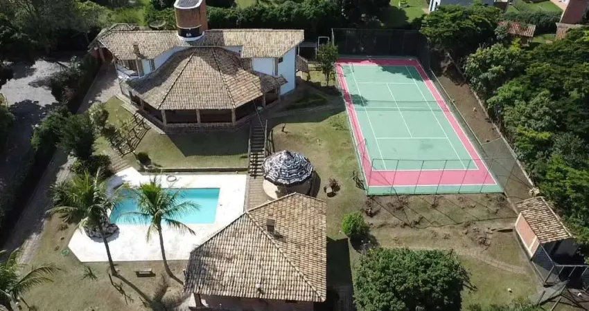 - 04 suítes; - sala de estar grande; - sala de tv; - escritório; - cozinha; - lavanderia; - área de churrasqueira grande; - piscina com 10 metros de comprimento; - pomar; - canil; - quadra de tenis; - 2 poços de água.