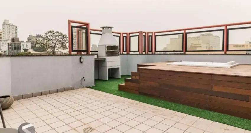 Ótima cobertura no Moinhos de Vento, com de 82m², mobiliada, lateral. Ideal para moradia ou investimento, com alta demanda para locação temporária. Possui sala ampla para 2 ambientes (sala e dormitório), banheiro, cozinha compacta, e amplo terraço com deck em madeira com Jacuzzi e churrasqueira. Imóvel decorado e mobiliado com muito bom gosto e qualidade. Água quente. Muito ventilado, iluminado e com ótima vista. Possui uma vaga de garagem coberta e escriturada. Condomínio com portaria 12h, elevador, gás entral, lavanderia e zeladoria. Localizada em ótima região, próximo do Parcão, do Shopping Moinhos, com todos os recursos e comodidades do bairro próximas. Aceita financiamento.