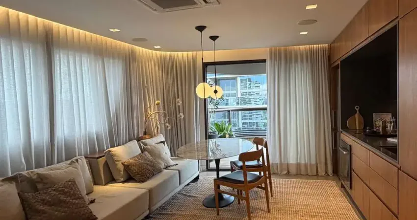 O imóvel conta com 1 dormitório, duas vagas de garagem demarcadas e um projeto impecável, com mobília de alto padrão, marcenaria completa, eletrodomésticos embutidos e sistema de automação. A área social é valorizada por uma varanda com vista aberta e encantadora para o bairro, trazendo ainda mais exclusividade e conforto ao dia a dia. Cada detalhe foi pensado com muito bom gosto e alto nível de acabamento.