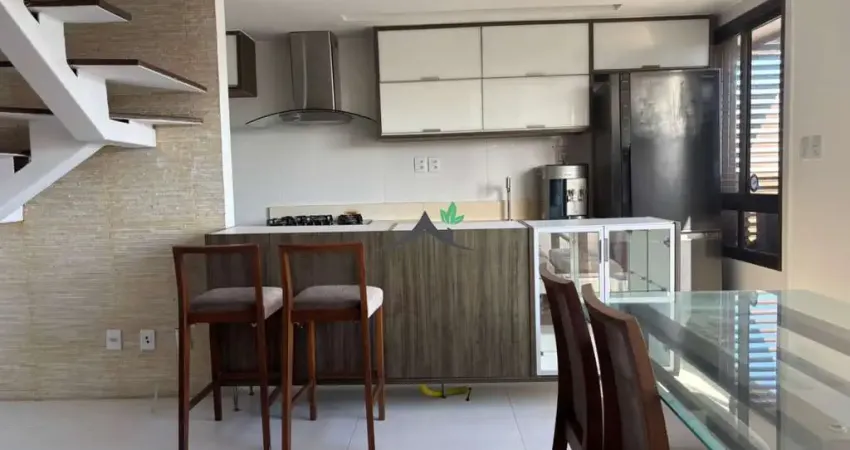 Bela cobertura à venda com 86m², com dois andares, dois quartos sendo duas suítes, sala de estar e jantar, lavabo, cozinha, varanda gourmet, armários planejados, duas vagas de garagem. Prédio com elevador.