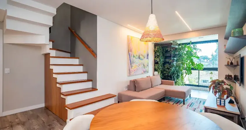 São dois quartos bem distribuídos, cozinha prática, e um diferencial raro: o elevador com acesso direto aos dois pavimentos, trazendo funcionalidade sem abrir mão do charme.