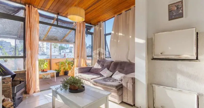 Ótima cobertura horizontal, de frente, possui 2 dormitórios, 1 suíte ampla com hidro e closet, sala de jantar com rebaixe em gesso e iluminação, sala de estar com lareira e churrasqueira, terraço amplo, banheiro social, cozinha montada e área de serviço. Gás central e junker instalado. Piso em porcelanato na área social e laminado nos dormitórios. Excelente posição solar e ventilação. Imóvel com 94m² de área privativa e 113m² de área total, localizado próximo ao zaffari higienópolis. 1 vaga de garagem escriturada. Prédio pequeno e muito bem conservado. Aceita financiamento e fgts.
