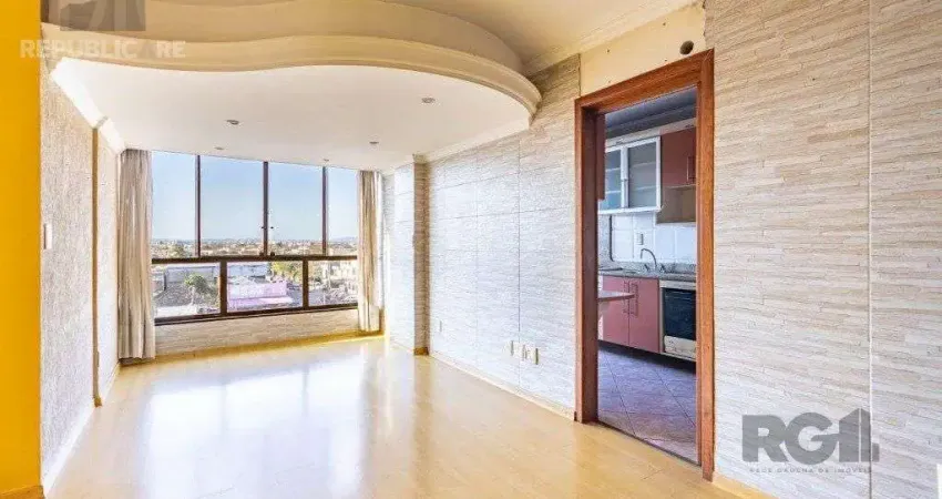 Ótima e ampla cobertura duplex no Sarandi, frente, com 123m² privativos, de 2 quartos e 1 vaga. Possui no andar inferior: sala ampla para 2 ambientes com rebaixo em gesso, 2 quartos, banheiro com box de vidro, cozinha mobiliada e área de serviço separada. No andar superior possui: salão com bar e churrasqueira, lavabo, sala de estar com lareira e ótimo terraço com vista. Imóvel com peças amplas, muito ventilado e iluminado. Condomínio com interfone, elevador, gás central e zelador. Localizado em ótima região próximo da Av Assis Brasil, com todos os recursos próximos. Aceita financiamento. Agende já uma visita.