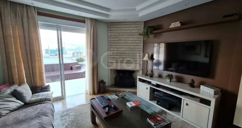Cobertura com sala de estar, sala de jantar, sacada com churrasqueira, cozinha, copa, área de serviço, banheiro social, 2 quartos, sendo 1 suíte, com potencial para instalação de um ou mais dormitórios adicionais. Conta ainda com hidromassagem, terraço, teto rebaixado, lareira, 1 vaga de garagem e um amplo terraço que inclui churrasqueira e jacuzzi com vista panorâmica da cidade de Florianópolis.