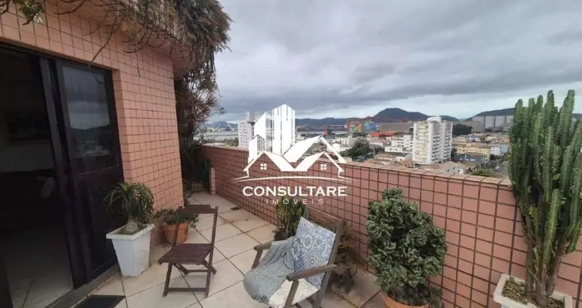 Cobertura a venda, com vista livre, arejada, com 2 suítes, 2 salas, dependência completa e 2 vagas demarcadas no bairro Aparecida em Santos/SP.