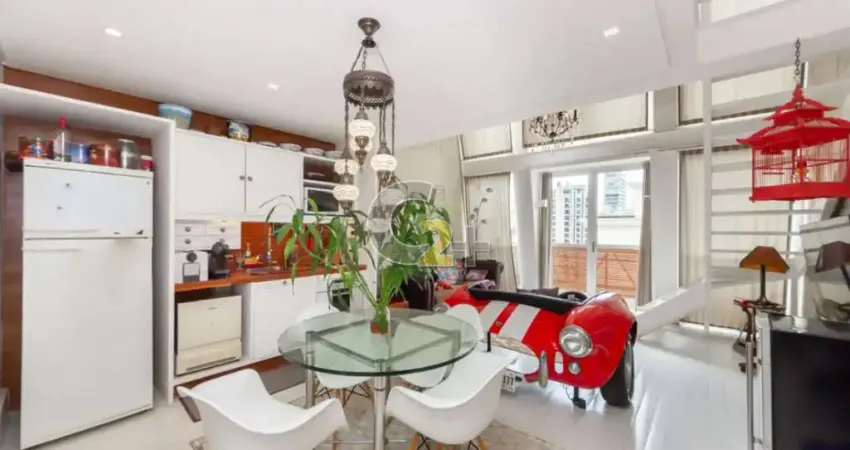 Cobertura Duplex à venda em Pinheiros com 110m², 2 suítes com varanda, sala para 2 ambientes, terraço, pé-direito duplo, cozinha gourmet integrada, lavabo. Decorado.