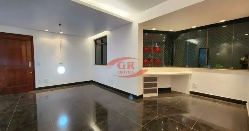 Sala para dois ambientes com iluminação planejada, piso em porcelanato e a Varanda incorporada;