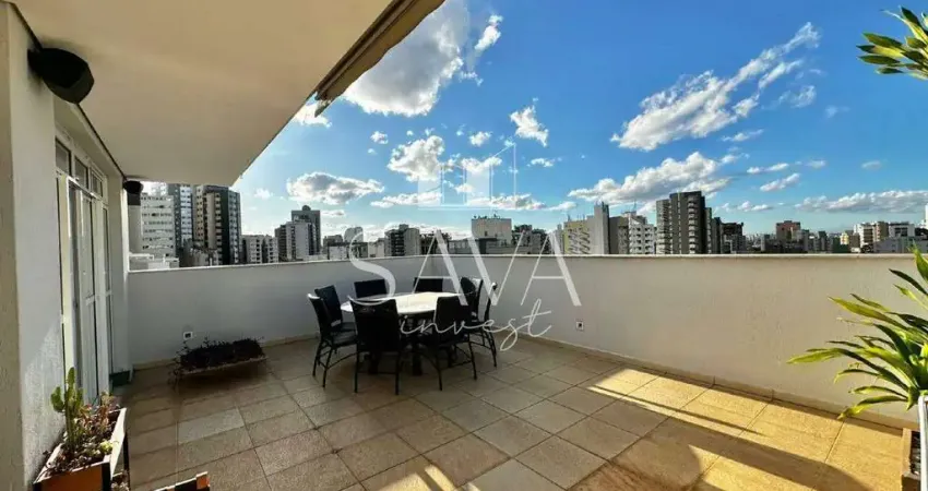 Cobertura com linda vista para a cidade, perfeita para ser personalizada de acordo com as preferências do novo morador. O espaço conta com churrasqueira, bancada em granito e área de lazer ideal para receber amigos, além de armários planejados. As salas são aconchegantes e bem estruturadas, com escada com guarda-corpo de vidro e corrimão. A cozinha possui armários embutidos e a área de serviço é individual, funcional e também equipada com armários. O imóvel dispõe ainda de rouparia, ampliando as possibilidades de armazenamento e organização. Os quartos são completos, com armários embutidos, sendo um deles suíte com closet. Os banheiros contam com armários, box em vidro, espelhos, pia e cuba.
