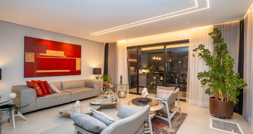 A área íntima conta com suíte master confortável, banheiro sofisticado com banheira de imersão e iluminação cuidadosamente planejada, além de ambientes bem distribuídos e silenciosos.