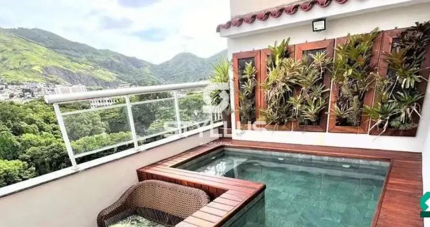 Junto a praça Rio Grande do Norte! Linda cobertura duplex com vista panorâmica, composta de: 1 pavimento; Varanda, sala em piso laminado e paredes com revestimento em madeira (fino acabamento). Dois quartos em piso porcelanato e armários. Banheiro social finamente decorado com box Blindex. Cozinha azulejada ao teto, armários planejados e pia em granito. Área de serviço separada. 2 pavimento; Terceiro quarto seguindo padrão de piso dos outros quartos. segundo banheiro totalmente reformado. Acesso ao terraço que possui espaço gourmet todo equipado, incluindo Churrasqueira, deck, piscina e um jardim suspenso. Imóvel impecável! Uma vaga escriturada. Prédio com ótima apresentação! Aceitando financiamento! Na Styllus Imobiliária, você encontra mais de 2.000 imóveis prontos e em lançamento, para chamar de seu. Sua procura acaba aqui! Pensando em vender seu imóvel? Os especialistas estão aqui. Agende uma visita e traga a documentação para uma avaliação gratuita. Dúvidas? Ligue ou envie uma mensagem para (21) ou visite-nos em (link removido)