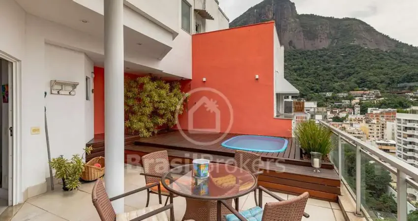 Encantadora cobertura na Borges de Medeiros com deslumbrante vista para a Lagoa e sol da manhã. 1° piso Sala lavabo dois quartos integrados formando uma ampla suíte com fácil reversão . Varanda aberta. Cozinha planejada com possibilidade de integração à sala de jantar. Área de serviço e dependências completas. 2o piso Acesso por escada de patamar. Living banheiro social e um espaçoso terraço com área de lazer e piscina. Belíssima vista para o Cristo e Lagoa. Closet junto à escada para a suíte master. 3° piso Acesso também por escada de patamar para uma suíte master rodeada pelo espelho d água da Lagoa Rodrigo de Freitas. Imóvel com vista livre e indevassável muito claro e arejado. Prédio em centro de terreno com jardins duas frentes Borges de Medeiros e Alexandre Ferreira com duas portarias 24 horas. Play e salão de festa. Duas vagas de garagem Aceita pet - COD 2012817 - Informações Atualizadas em Treze de fevereiro Dois Mil e Vinte e Seis