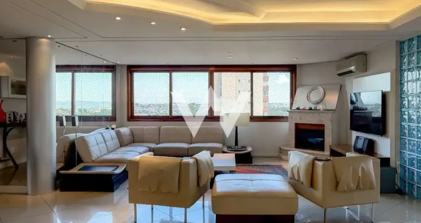 Encante-se com esta cobertura mobiliada no Porte Doreé, no Vila Nova, Novo Hamburgo. Com 277,16 m² de área privativa e 403,72 m² de área total, o imóvel conta com 3 suítes, 5 banheiros, 4 vagas de garagem, lareira e hidromassagem, oferecendo muito espaço e conforto. A infraestrutura do condomínio possui comodidades como piscina, espaço gourmet, churrasqueira e playground.