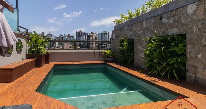 Exclusividade Arte Imobiliária! Cobertura reformada com 3 dormitórios (1 suíte) e vista espetacular Esta cobertura encanta em todos os detalhes. No pavimento inferior, dispõe de três dormitórios, sendo uma suíte, além de um amplo living para três ambientes, com vista privilegiada para a praça e o Clube GNU. O espaço é complementado por lavabo, cozinha com copa, área de serviço e banheiro auxiliar. No pavimento superior, um ambiente social amplo, integrado e extremamente aconchegante, perfeito para receber amigos e família. Conta com lareira, churrasqueira e um banheiro social com banheira de hidromassagem, ideal para momentos de relaxamento, sempre acompanhado de uma vista deslumbrante. O grande destaque fica por conta do terraço generoso, com piscina aquecida, sol o dia todo e vista definida e maravilhosa, presente em praticamente todos os ambientes do imóvel. # Orientação solar perfeita # Duas vagas de garagem individuais O edifício oferece infraestrutura completa, com portaria 24 horas, piscina, quiosque com churrasqueiras, salão de festas, academia, jardim com paisagismo, playground e sala de jogos. Uma cobertura única, que combina conforto, lazer, privacidade e uma vista simplesmente incrível. Preço e disponibilidade do imóvel sujeitos a alteração sem aviso prévio.