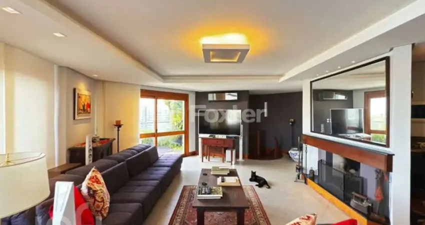 Cobertura sofisticada no Mont Serrat, Porto Alegre-RS, com 282,43m² privativos, 3 dormitórios (1 suíte), 4 banheiros e 4 vagas. Living amplo com lareira, churrasqueira, varanda com vista panorâmica e piscina privativa, oferecendo conforto e lazer exclusivos. Edifício com elevador, sala fitness, portaria e segurança 24h. Agende sua visita e viva o melhor do Mont Serrat!
