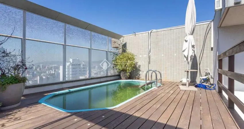 Excelente cobertura de 3 dormitórios com suíte, semi mobiliada, iluminada e com uma linda vista panorâmica da cidade, andar alto, sol da manhã, em localização privilegiada ao lado do Grêmio Náutico União Petrópolis, com piscina, deck e terraço contando com espaço gourmet com churrasqueira.