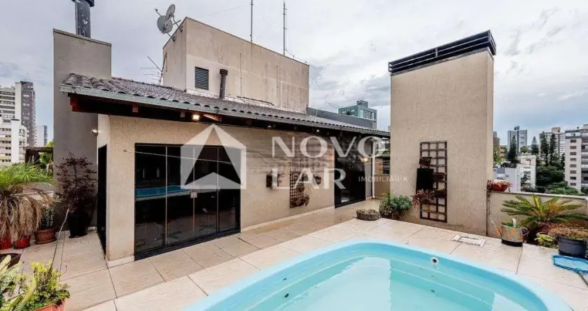 Cobertura à venda no Bairro Petrópolis, ensolarada, sem-imobiliada, com 229 m2 privativos. No pavimento inferior, temos living para dois ambientes, estar social e jantar, lavabo, 3 dormitórios, sendo uma suíte, cozinha montada e área de serviço. No pavimento superior, temos um amplo salão para convivência com espaço gourmet com churrasqueira, sala de jantar, banheiro e um terraço ensolarado com piscina privativa. Imóvel com 2 vagas de garagem cobertas e escrituradas e depósito