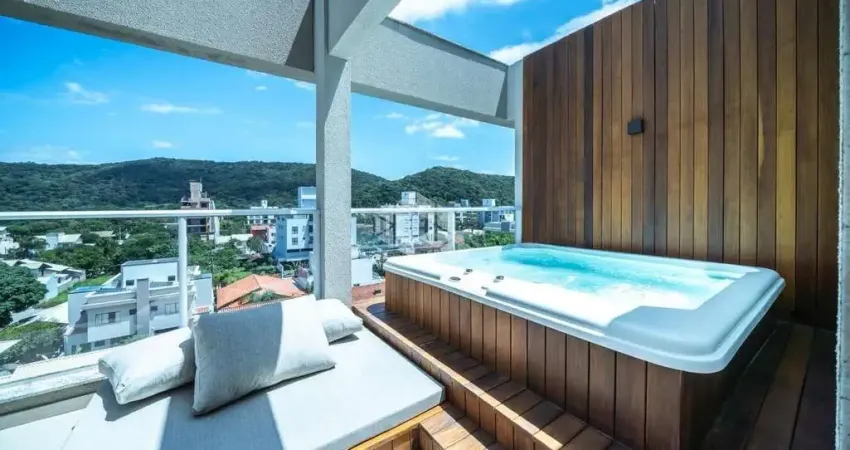 Cobertura duplex mobiliada e decorada, com 138m² de área privativa, três quartos/dormitórios sendo, três suítes, lavabo, sala de estar, sala de jantar, cozinha planejada, amplo terraço, persianas automatizadas, hidromassagem para quatro pessoas, churrasqueira a carvão, vista panorâmica, área de serviço, box de praia, três vagas de garagem.