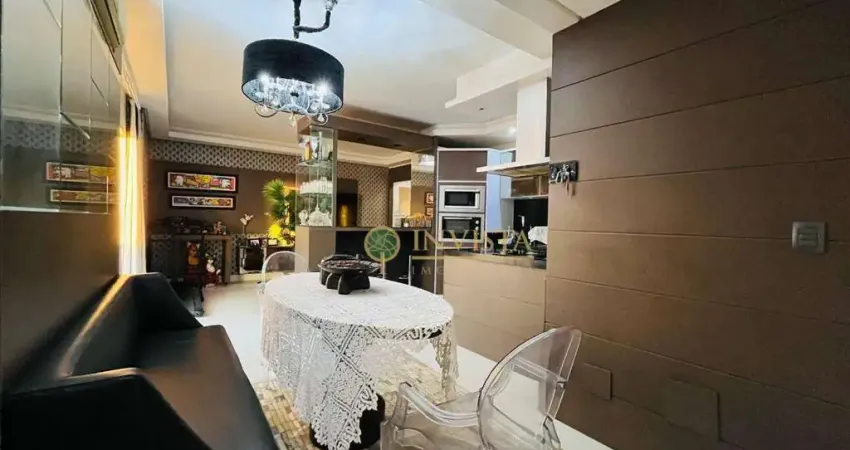 Imóvel com sala de estar, jantar, cozinha e sacada com churrasqueira todos integrados, lavabo, 3 quartos sendo 2 suítes e uma delas master com closet, ares condicionados e 2 vagas de garagem.