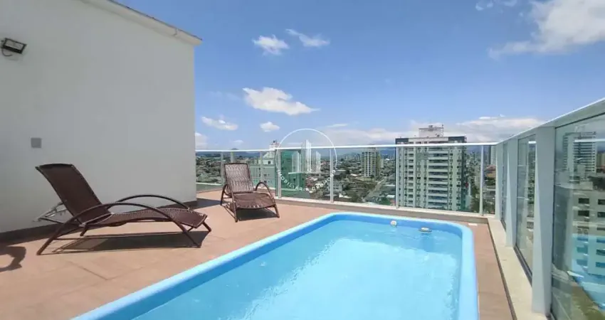 Cobertura 3 quartos em Barreiros, São José com 268m² privativos e piscina privativa no terraço. O imóvel possui 3 dormitórios sendo 2 suítes, uma delas com sacada e banheira de hidromassagem, todos com acesso ao terraço, sala de estar e jantar, cozinha ampla com eletrodomésticos, espaço gourmet com churrasqueira, área de serviço ampla e 2 vagas de garagem mais hobby box. Vista mar exuberante e amplas áreas de convivência.