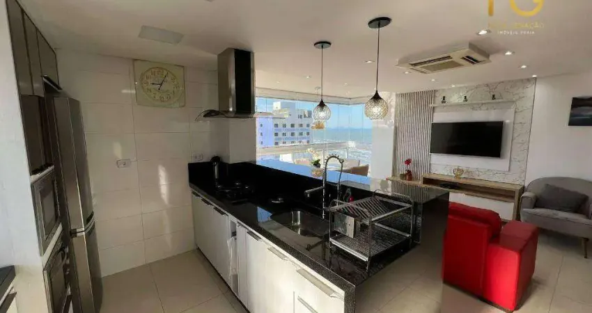 COBERTURA DUPLEX, Possui linda vista para o mar, 143 m2 de área privativa, com 3 dormitórios sendo 3 suítes + 2 lavabos, cozinha americana com 2 ambientes, área gourmet com hidromassagem e vista para o mar. Churrasqueira a carvão (tradicional), 2 vagas de garagem.