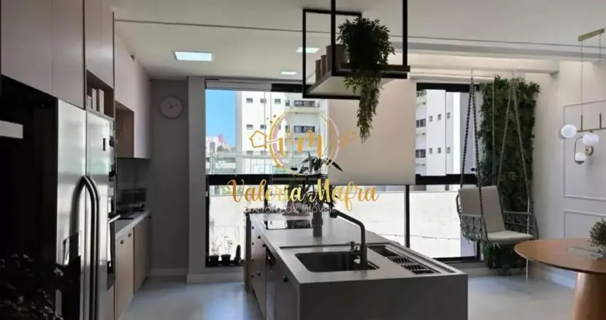 Cozinha Americana em Porcelanato, Armários Planejados, Ilha, Cooktop, Forno, Microondas e Geladeira Electrolux;