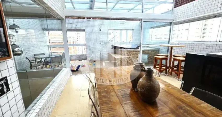 235m2 c/ 3 suÍtes planejadas (sendo 1 master c/ closet), ampla sala de estar 3 ambientes c/ acesso à copa e à cozinha americana planejadas, lavabo, área serviço c/ WC. COBERTURA c/ ampla sala estar integrada à churrasqueira, lavabo, e amplo quintal c/ jacuzzi (teto retrátil), 3 vagas garagem. IMPECÁVEL!! AGENDE SUA VISITA!!