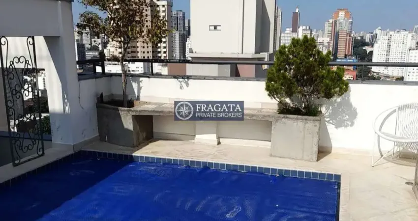 Cobertura Duplex bairro das Perdizes com 3 dormitórios uma suíte e duas vagas 186 m². No andar superior tem uma área externa com piscina, sala de estar, lavabo e área de serviço aberta para a área externa.