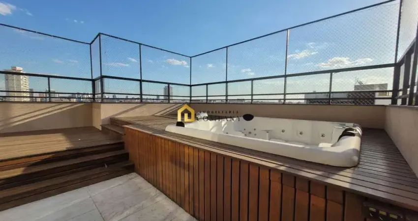 Cobertura linear, em Sorocaba/SP, com 3 suítes, espaço gourmet com deck molhado, SPA, churrasqueira, balcão com chopeira., com vista livre para toda cidade, e pôr do Sol. Extensa varanda que permeia tanto a sala de estar, quanto a sala de TV.