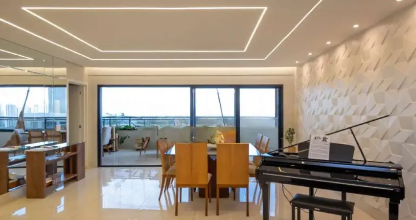 A unidade de 269m² de área privativa, conta com 4 suítes plenas, (suíte máster com hidromassagem e closet), lavabo, sala ampla para 2 ambientes, e hall privativo. Cozinha e serviço completos em armários. Na área de convivência é importante mencionar ampla varanda gourmet com churrasqueira a carvão, cozinha auxiliar e deck com piscina!