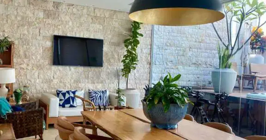 Apartamento decorado tipo cobertura, com 310 m², totalmente mobiliado e com acabamentos de alto padrão. Possui 4 suítes, 6 banheiros, sala ampla, cozinha planejada, área de serviço e um deck privativo com hidromassagem.