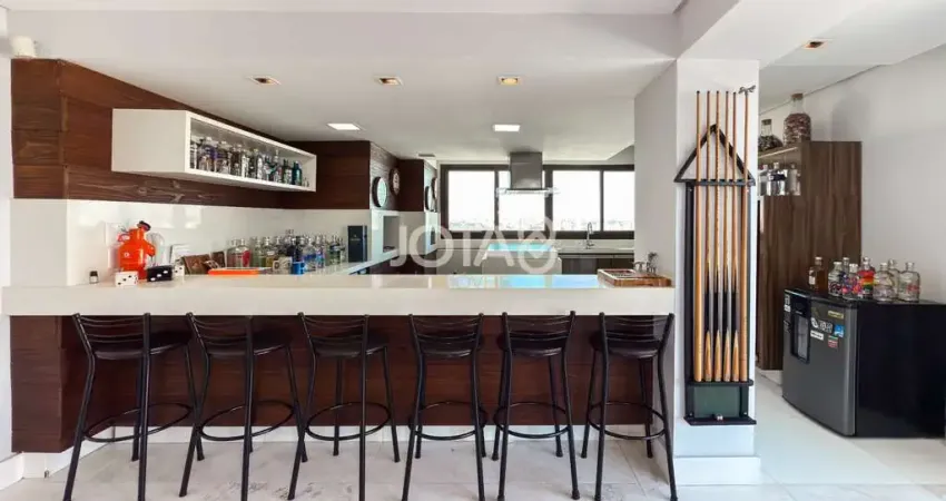 sala de jogos, cozinha gourmet, forno de pizza, churrasqueira e uma jacuzzi com vista para a Serra do Mar incrível.