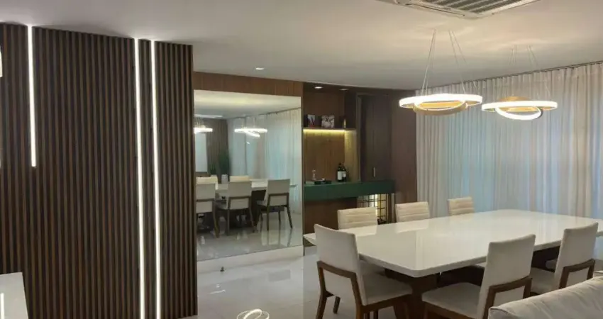 Ao entrar, você será recebido por um salão amplo, dividido em ambientes harmoniosamente integrados, com pisos em porcelanato e ar condicionado K7, garantindo um ambiente sempre climatizado. O varandão frontal é um espetáculo à parte: totalmente climatizado, possui uma bancada gourmet, churrasqueira e pia de apoio, com acabamentos impecáveis, proporcionando um espaço perfeito para relaxar ou entreter convidados. Este pavimento conta com quatro suítes elegantemente planejadas, uma delas transformada em um sofisticado closet. O lavabo é decorado com extremo bom gosto e a copa-cozinha, com armários planejados, oferece toda a funcionalidade que você precisa. Há ainda uma área de serviço espaçosa e um banheiro de serviço.