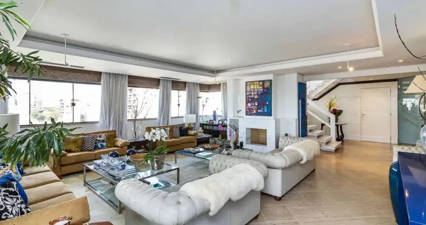 Cobertura de 4 suítes com 460 m² de área privativa e vista panorâmica 360 graus de Porto Alegre. 5 vagas individuais e depósito.