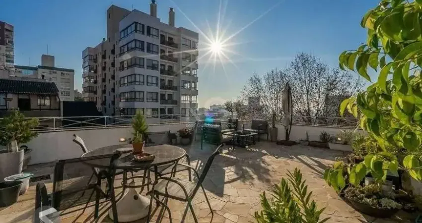 Ótima cobertura duplex no bairro Auxiliadora, de frente, com 213m² privativos, de 4 dormitórios sendo 2 suítes, amplo living, sala com lareira e churrasqueira, copa cozinha mobiliada e ótimo terraço. Possui uma vaga de garagem coberta e fixa (convenção). Localizada no bairro Auxiliadora, próximo do Moinhos Shopping, Parque Moinhos de Vento (Parcão) e da Av. Anita Garibaldi. Condomínio com zelador, porteiro eletrônico, NÃO possui elevador. Aceita financiamento. Agende já uma visita.