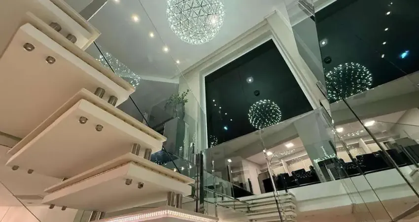 O primeiro andar conta com um grande espaço privado composto pela sala, que faz a conexão perfeita entre as 4 suítes desta linda cobertura. O destaque vai para a master suíte, com um amplo espaço, TV retrátil embutida no teto, hidromassagem e, claro, uma linda vista da cidade.
