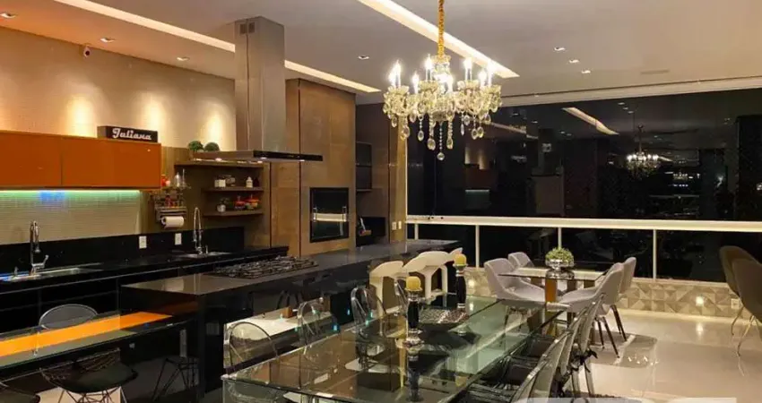 São 376m² de área total e 296m² de área privativa de uma elegante, belíssima e luxuosa cobertura plana finamente decorada e 100% mobiliada, com piso em porcelanato, teto e telhas de laje. Com uma pintura sofisticada, proporcionando uma atmosfera auspiciosa e super atraente ao ambiente, ótimos acabamentos e excelentes estruturas.