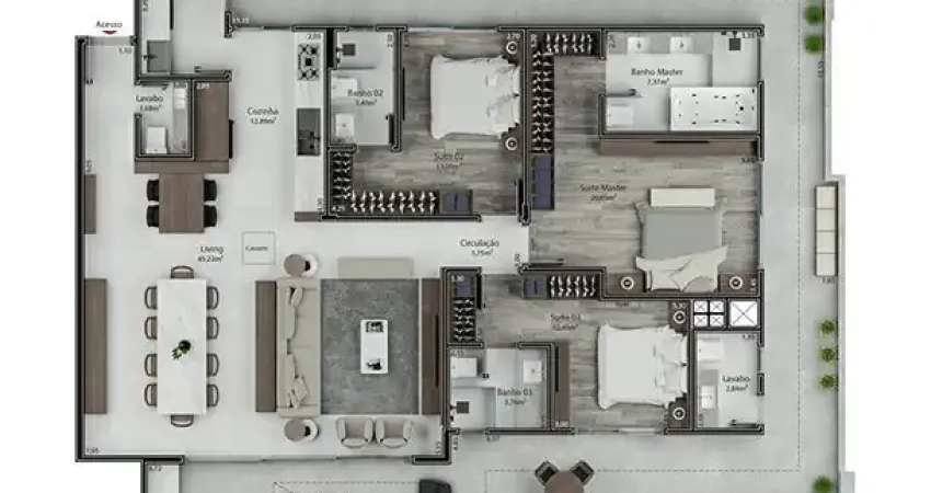 Apartamentos com 2 e 3 dormitórios, sendo 1, 2 ou 3 suítes e coberturas com 3 suítes