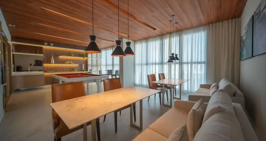 Condomínio com piscina coberta e aquecida com sauna, piscina externa, piscina infantil, quadra de futebol com gramado sintético, salão de festa, salão de jogos e academia.