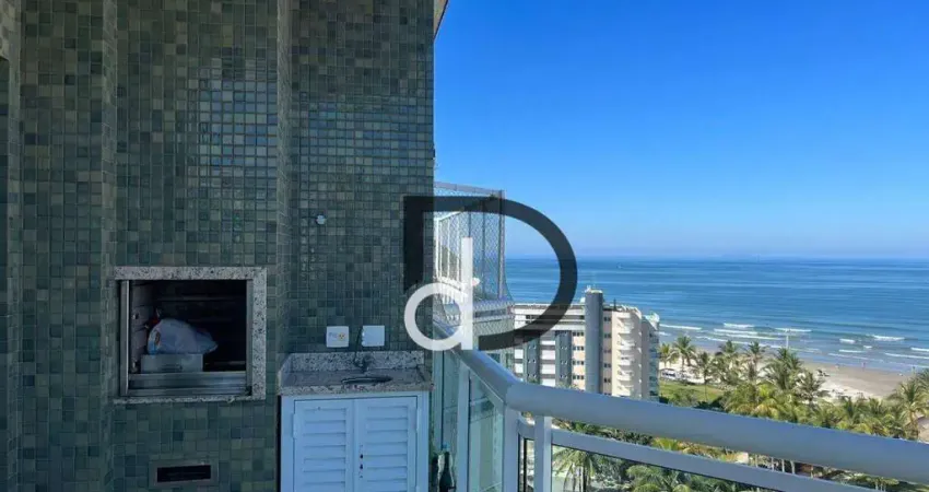 Cobertura pé na grama vista mar, 223m2 e 4 dormitórios, a 70m da praia com piscina privativa, varanda gourmet com churrasqueira.
