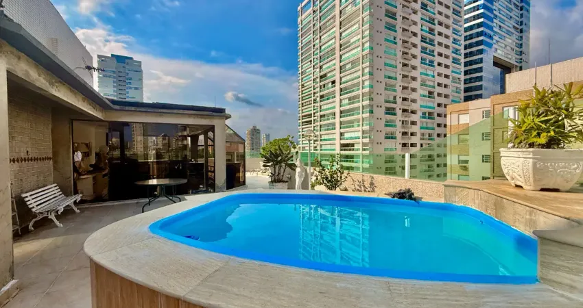 Venha morar em uma cobertura ampla na quadra da praia, localizada no bairro da Aparecida, com 4 quartos, sendo 1 suíte, banheiro social, sala ampla com 2 ambientes e varanda, lavabo, cozinha com armários, área de serviço com quarto e banheiro de serviço. Ja no 2° piso com mais uma sala 2 ambientes, bar, banheiro social e depósito, e na parte externa com amplo quintal com piscina e churrasqueira.
