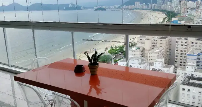 Linda Cobertura triplex, finamente mobiliada e decorada, com vista total e perpétua de todas as praias de Santos ! Piscina grande com cascata, ótimo espaço gourmet com churrasqueira, 4 dormitórios, 3 suítes, a suíte master possui um belíssimo closet walk-in ! 3 vagas na garagem, diversas salas e ambientes de lazer, tudo enfim que somente uma Cobertura COMPLETA pode lhe proporcionar ! Vê-se as praias de todos os cômodos !! Estuda imóvel como parte de pagamento. Edifício com lazer completo e segurança total.