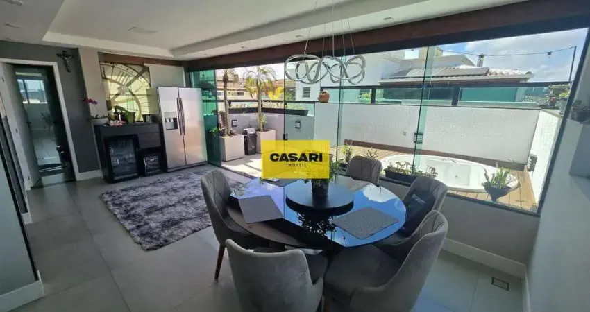 Linda cobertura com 4 dormitórios, sendo 1 suíte, além de lavabo, ar-condicionado e teto em gesso. O imóvel conta com espaço de lazer privativo, incluindo hidromassagem externa e churrasqueira a carvão, ideal para receber familiares e amigos. Possui lavanderia e área envidraçada, trazendo ainda mais praticidade e conforto. Localização privilegiada, próxima a mercados, escolas, comércios e com fácil acesso à Rodovia Anchieta e principais vias da região.