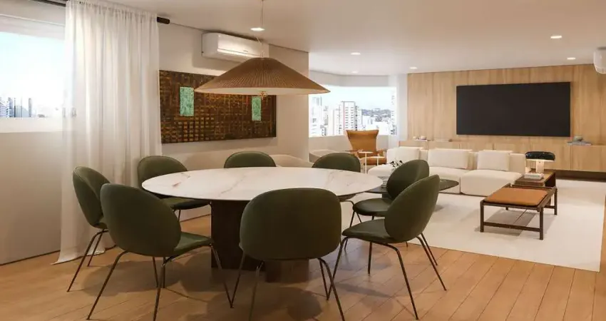 Os espaços se entrelaçam de forma fluida e harmoniosa, exaltando a luz natural e proporcionando versatilidade para criar diferentes atmosferas em qualquer ocasião.