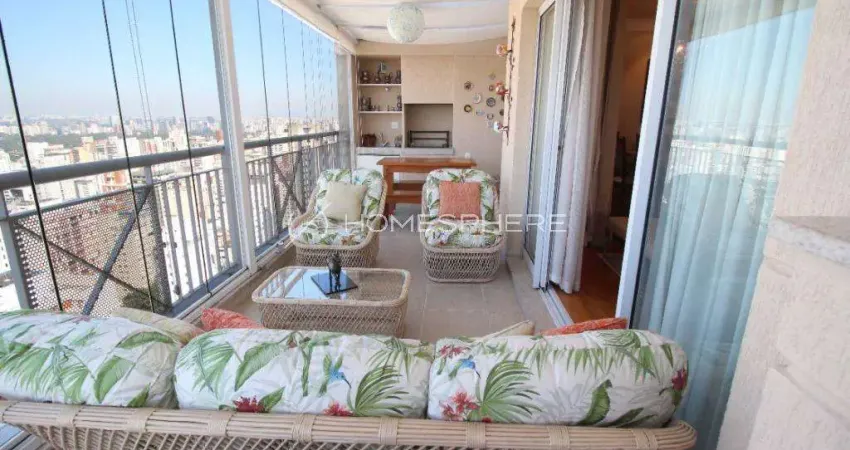 A varanda gourmet com churrasqueira, é um charme à parte, de onde se desfruta da maravilhosa vista de São Paulo. Aqui também tem solarium com jacuzzi para além de tomar sol, é possível relaxar com a família e cultivar bons momentos na companhia de pessoas queridas.
