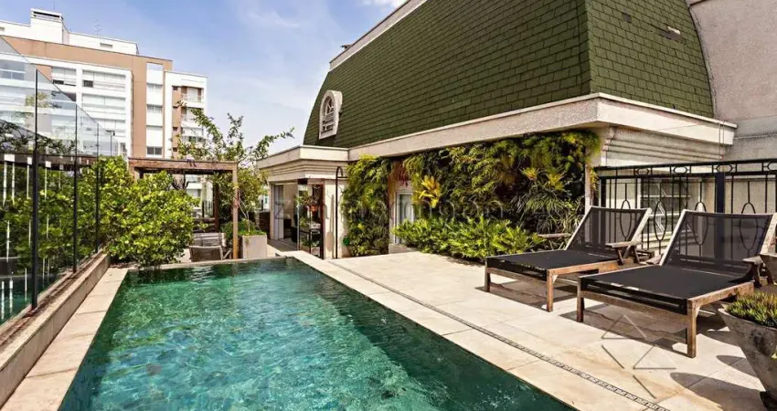 Cobertura com projeto assinado por João Armentano e paisagismo de Gilberto Elkis.