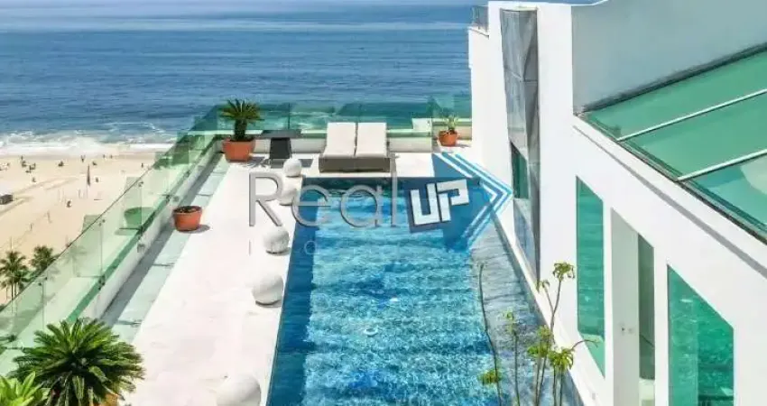 Real Up vende; Vista frontal Mar!! posto 3 Cobertura duplex deslumbrante de 848m², totalmente equipada e mobiliada com móveis desenhados por Philippe Starck e Le Corbusier, composta por terraço com linda vista panorâmica da praia, lounge sunset, piscina 5 x 12 metros com Cascata, espaço gourmet com churrasqueira e um forno a lenha, 5 suítes, 5 banheiros sociais, 2 lavabos, 2 Salas de Jantar (1 para 20 pessoas e outra para 10), salão com vista panorâmica de toda a praia, salão de TV, 2 suítes júnior, 2 suítes master e 1 suíte presidencial, sendo todos os banheiros em mármore. Ambientes com sistemas independentes de ar condicionado, além de internet banda larga e TV a cabo. dependências completas ,Entrar e Morar!! Imperdível!!! Garagem na escritura. Portaria 24 horas.