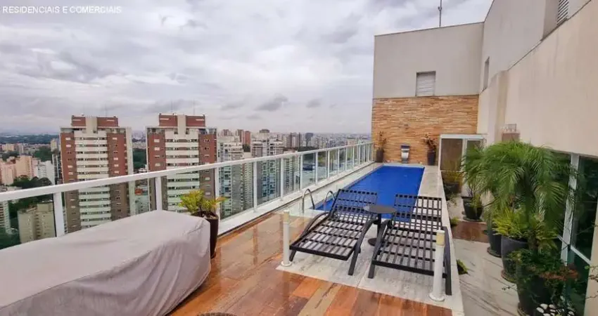 Cobertura Duplex com 562M², no andar inferior 4 suítes sendo 1 master com closet e hidro, sala para 3 ambientes integrada ao terraço, academia, terraço social fechado com vidro, ampla cozinha com bancada, lavabo, área de serviço com banheiro e dormitório para funcionários. No andar superior sala com 3 ambientes, 1 suíte, cozinha com copa, terraço Gourmet com churrasqueira, piscina privativa e excelente vista panorâmica da cidade. O imóvel conta também com 5 vagas de garagem + deposito privativo.
