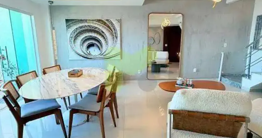Cobertura com acabamento fino em cada detalhe, composta por 3 quartos sendo 2 suítes, sala para 3 ambientes mais uma sala de apoio no segundo andar, banheiros social, cozinha em conceito aberto, toda planejada,, área de serviço e 2 vagas de garagens.