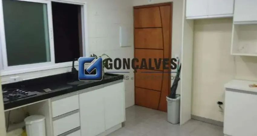 Cobertura residencial disponível para aluguel em Santo André, no bairro Vila Lutécia. Com 76 m² de área interna distribuídos em 2 quartos, 1 sala e 2 banheiros, além de 1 varanda e 1 vaga de garagem. A unidade fica na frente, em 2 andares com 4 unidades por andar, oferecendo iluminação natural e acabamento em cerâmica. A mobília fixa inclui armário na cozinha e no quarto, box no banheiro, água individual e gás canalizado. Controles de segurança como interfone e portão eletrônico, mais churrasqueira para momentos de convivência.